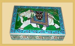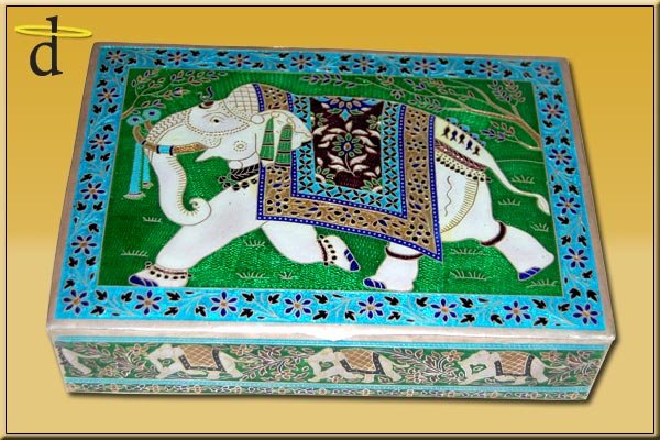 Silver Box with Enamel Work Hand Carved Wooden Ganesha Silver cladded Hand Carved Wooden Ganesha Silver cladded