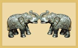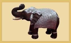 Hand Carved Wooden Elephant cladded with Silver Hand Carved Wooden Elephant cladded with Half Silver Hand Carved Wooden Chowki cladded with Silver
