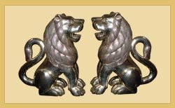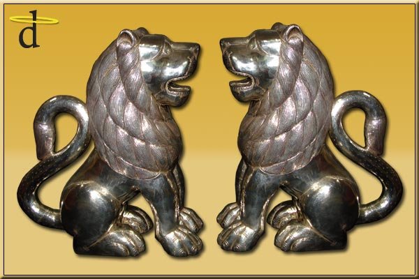Cronze with Silver Work Hand Carved Wooden Shrinathji cladded with Silver Hand Carved Wooden Lion cladded with Silver